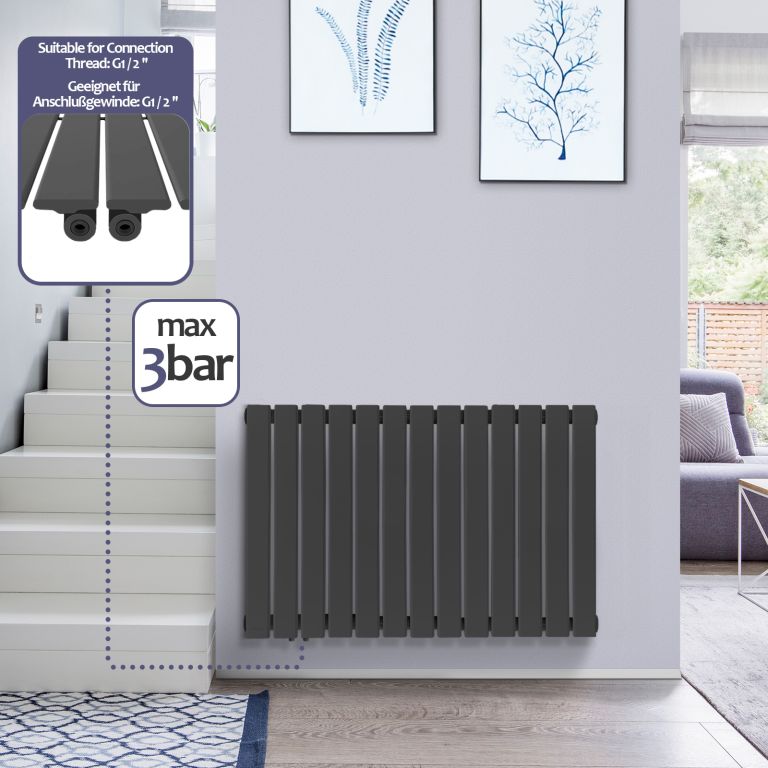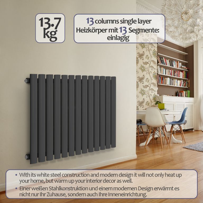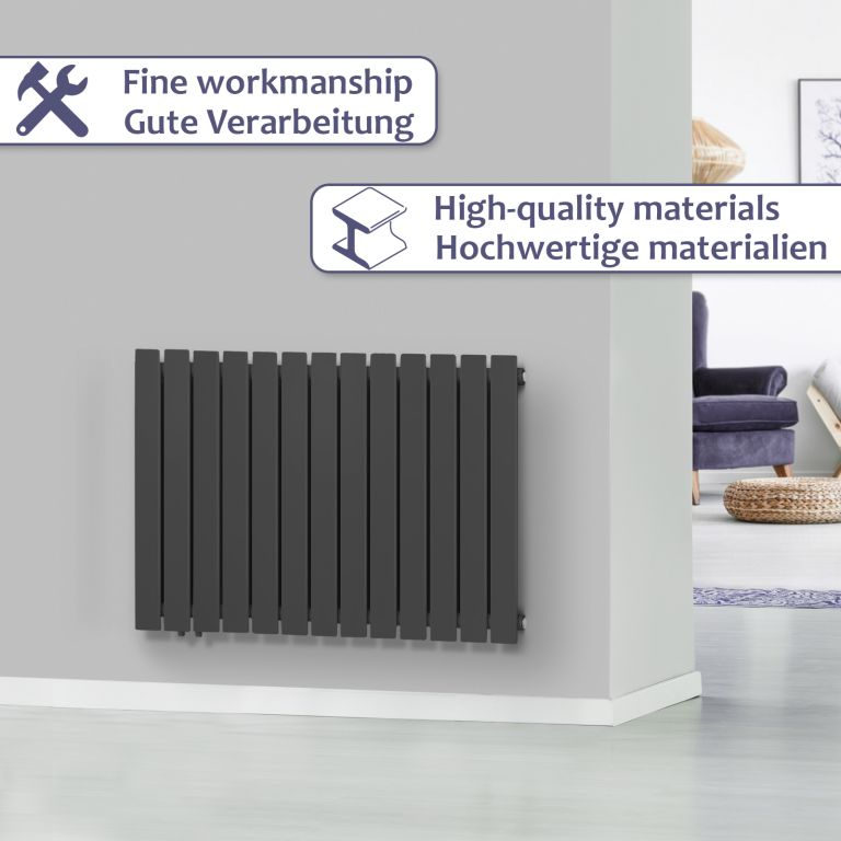 • Radiátor: 1x horizontální panelový radiátor (600 x 886 x 52 mm, antracit)