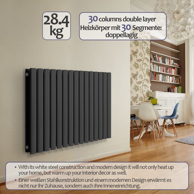 Tento moderní radiátor nabízí kromě plochého vzhledu i působivý výkon. S tepelným výkonem 1365 wattů, antracitovou ocelovou konstrukcí a moderním designem zahřeje nejen váš domov, ale i váš interiér. Upozornění: Ventily radiátorů nejsou součástí balení.