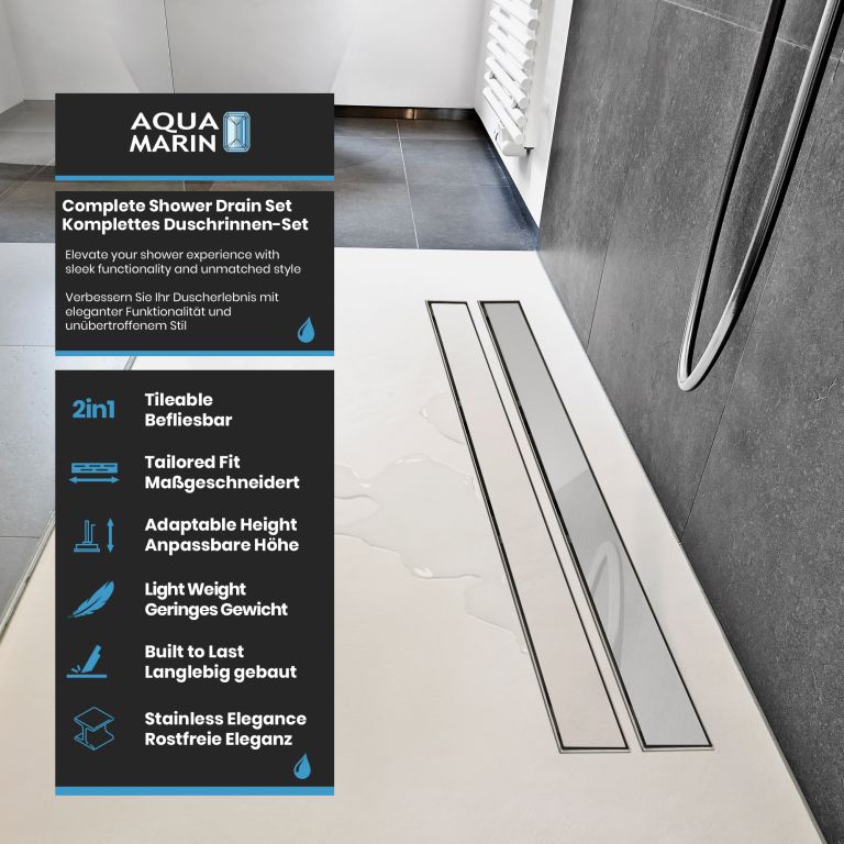 Proměňte svou koupelnu v oázu stylu a inovací díky našim vynikajícím lineárním sprchovým odtokům. Nerezová ocel nejvyšší kvality, umně kartáčovaná, v kombinaci s pískovaným hlavním tělem. Design vaší koupelny si zaslouží něco výjimečného, proto jsou naše sprchové odtoky navrženy tak, aby nejen zaujaly, ale také inspirovaly svou odolností. Díky zapuštěnému povrchovému materiálu vám zaručujeme výrobek, který obstojí ve zkoušce času. Instalace je rychlá, nekomplikovaná a bez nutnosti použití baterií. Mysleli jsme na vše, abyste se mohli bez obav soustředit na to podstatné. Vylepšete tvar a funkci svého sprchového koutu pomocí našeho elegantního a odolného lineárního sprchového odtoku, který dodá vaší každodenní rutině sofistikovanost.
