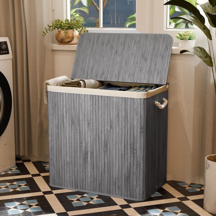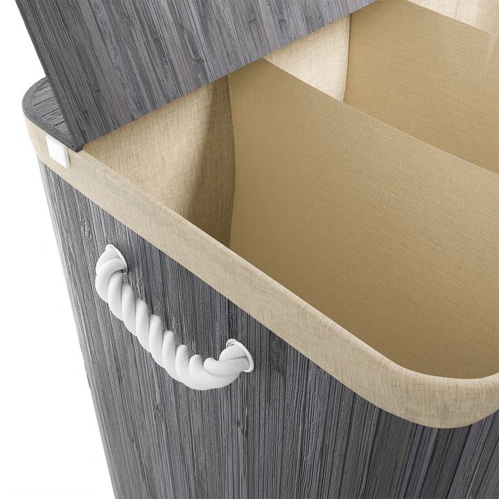 Udržujte domácnost čistou a uspořádanou díky prostornému bambusovému koši na prádlo o objemu 150 litrů. Díky třem odděleným komorám, pratelnému vnitřnímu vaku a pevné konstrukci z bambusových lamel je ideální pro každodenní třídění a hygienické ukládání prádla. Stylový přírodní design v moderní šedé barvě zapadne do koupelny, ložnice i dětského pokoje.