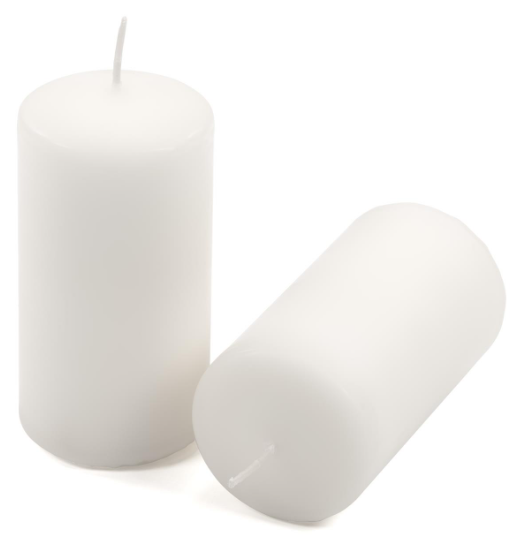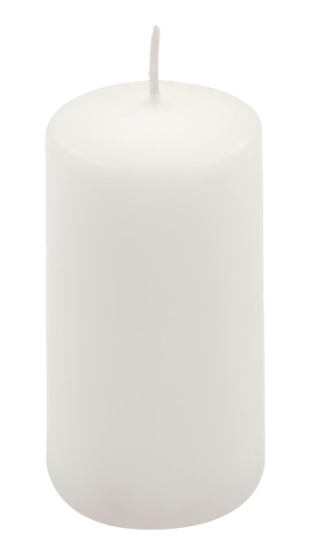 • svíčky: 16 × bílá sloupková svíčka 5 × 10 cm