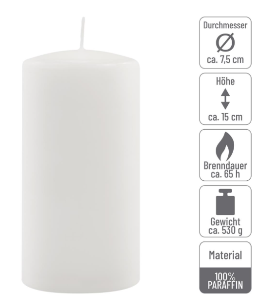 Všestranné sloupkové svíčky - Sada šesti svíček, které lze použít jako vánoční a narozeninové svíčky, stolní svíčky nebo dokonce do svícnu. Tyto sloupkové svíčky jsou ideální pro příležitosti, jako jsou narozeniny, svatby, večírky, oslavy, rodinná setkání nebo i překvapení, a poskytují příjemné světlo. Tato sada obsahuje šest vysoce kvalitních bílých sloupkových svíček o průměru 7,5 cm a výšce 15 cm. Svíčky jsou bez parfemace, hoří rovnoměrně a lze je snadno a opakovaně zapálit. Upozornění: Hořet pouze v žáruvzdorných svíčkách –