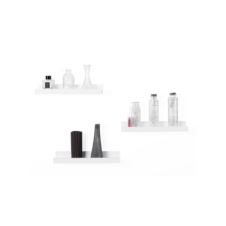 Vysoce kvalitní MDF materiál zaručuje pevnost a dlouhou životnost. Montáž zvládnete během chvilky, součástí balení jsou i krytky na šrouby pro dokonalý vzhled. Každá police unese až 5 kg, což zajišťuje široké možnosti využití.