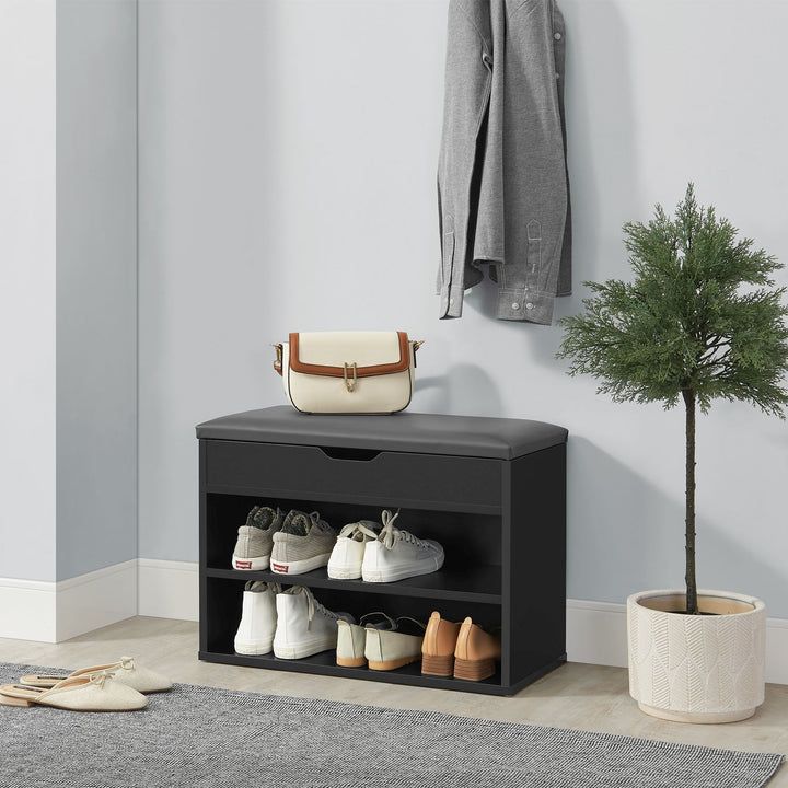 Botník s polstrovaným sedákem promění vaši předsíň v útulné a organizované místo. Dvě police pojmou až 6 párů bot a pod výklopným víkem najdete skrytý prostor na drobnosti. Měkký sedák vám zpříjemní obouvání i vyzouvání a nabídne pohodlí po náročném dni.