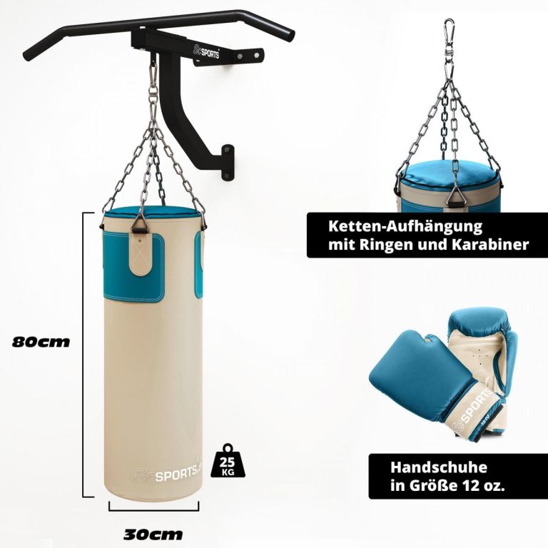 Úvod » SPORT » BOX » ♥ Boxovací PYTLE » Boxovací pytel s příslušenstvím, béžovo-modrý set na trénink