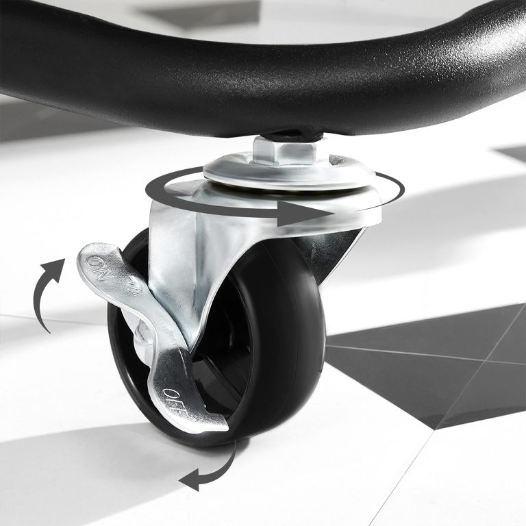Kvalitní ocelová konstrukce a plastové police zajistí pevnost a stabilitu. Montáž zvládnete během chvilky díky přehlednému návodu. Kolečka s brzdou umožní bezpečné zastavení, každá police unese až 10 kg.