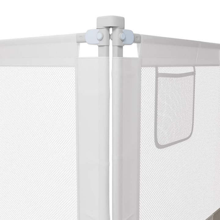 Robustní konstrukce z oceli a odolná tkanina Oxford zajišťují dlouhou životnost a snadnou údržbu. Jednoduché skládání a montáž umožňují rychlé použití doma i na cestách. Zábranu lze kombinovat s dalšími díly pro větší bezpečí.