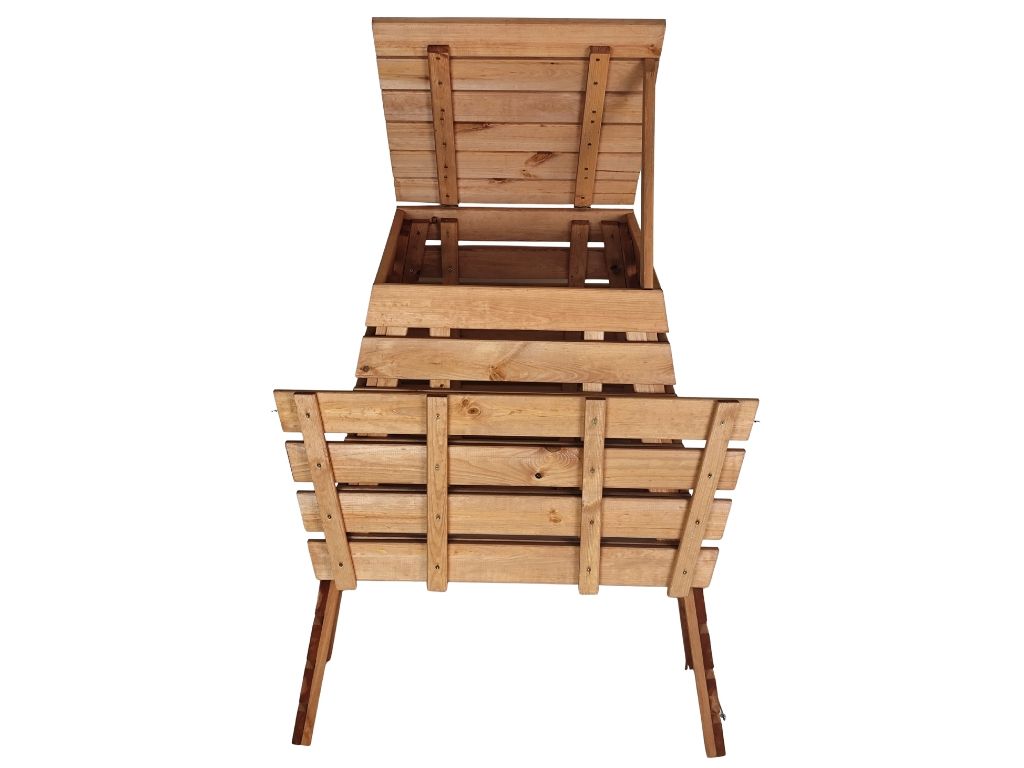 Kompostér je vyroben v české truhlárně ze smrkového nebo borovicového dřeva ošetřeného přírodním olejem. S objemem 430 litrů nabízí dostatek prostoru pro bioodpad a díky pevnému zpracování se stane dlouhodobým pomocníkem na vaší zahradě. Praktické víko a otevírací přední část usnadní manipulaci i vybírání hotového kompostu.