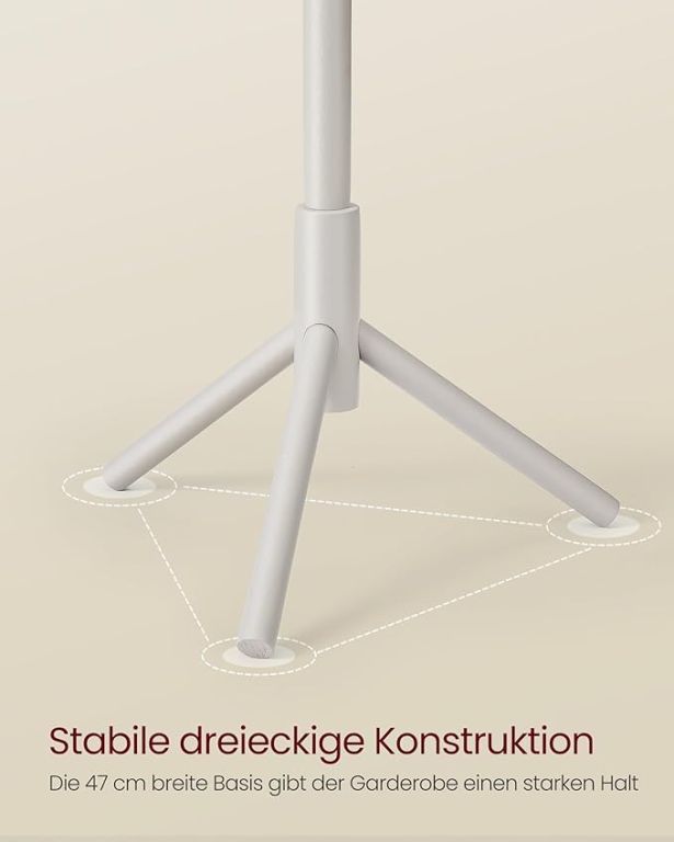 Vneste do svého domova pořádek i eleganci s tímto volně stojícím stojanem na kabáty v moderní béžové barvě. Kombinuje funkčnost a minimalistický design, díky čemuž se hodí do předsíně, kanceláře nebo ložnice. Snadná montáž bez nářadí umožní, že jej během několika minut postavíte a ihned začnete používat.
