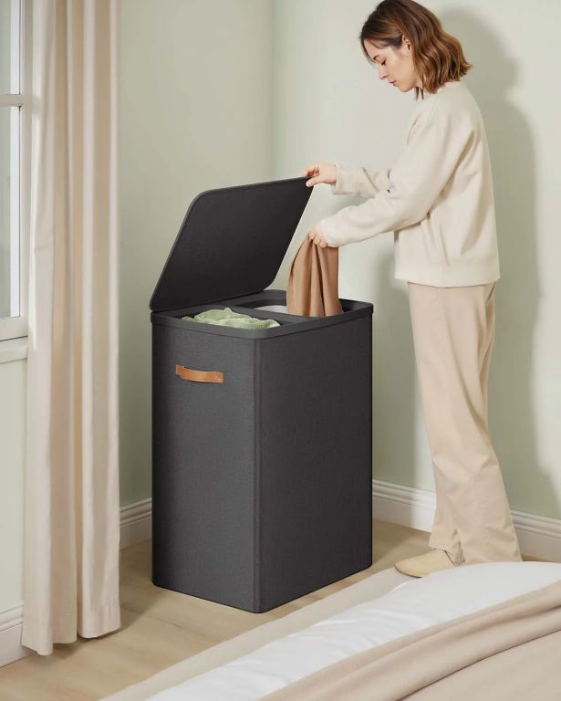 Vneste do domácnosti pořádek a styl s tímto dvoukomorovým košem na prádlo. Oddělené sekce pro světlé a tmavé prádlo vám usnadní praní a ušetří čas. Elegantní černý design doplní každou koupelnu či ložnici.