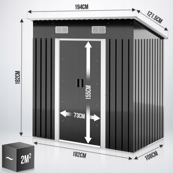 Úvod » ZAHRADA » DOMKY, DŘEVNÍKY » Zahradní DOMKY » Jago Zahradní domek na nářadí, antracit, 182 x 186 x 118 cm (b)