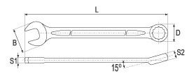 Očkoplochý klíč Yato vyrobený z chromvanadiové slitiny oceli, povrch je částečně satinovaný a leštěný do vysokého lesku. AS-Drive je vylepšený profil u nástrčných a očkových klíčů, v tomto případě očka.