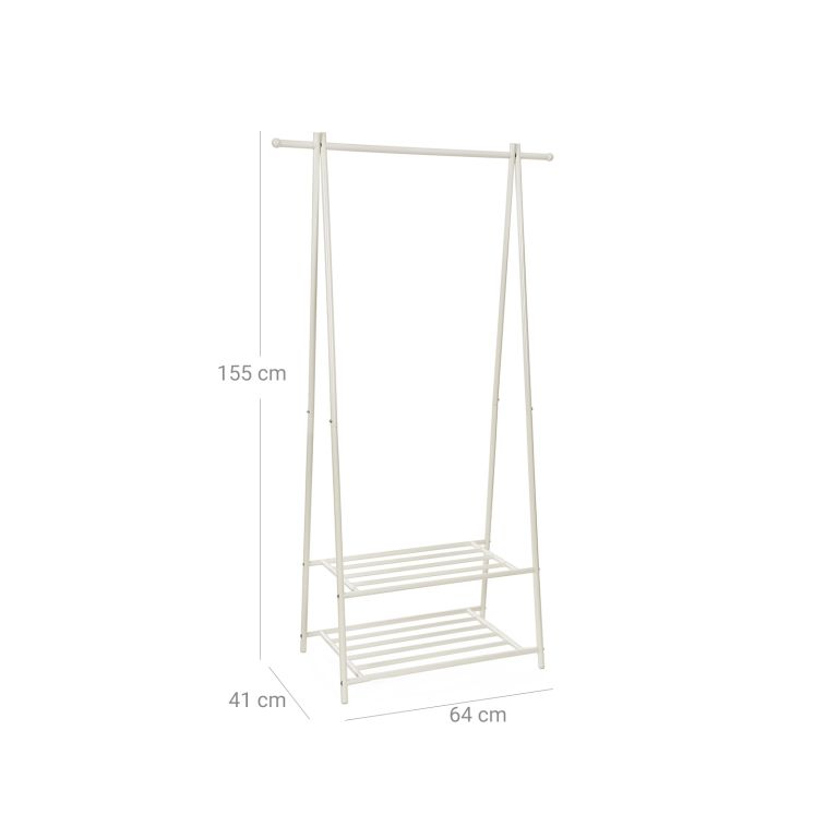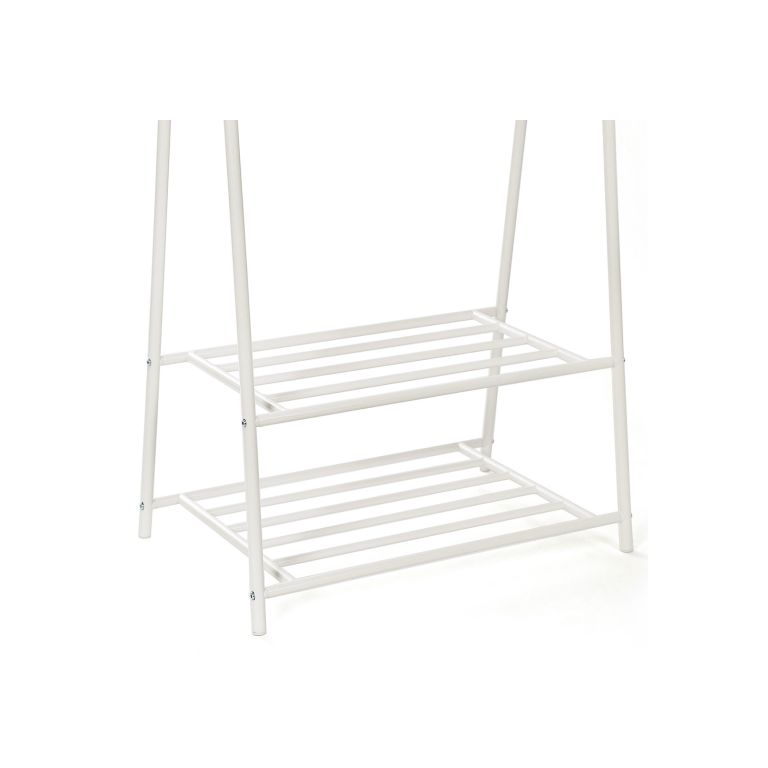 Úvod » DŮM | BYT » ♥ NÁBYTEK » Stojací VĚŠÁKY » Kovový stojan na oblečení se dvěma policemi na boty, bílý