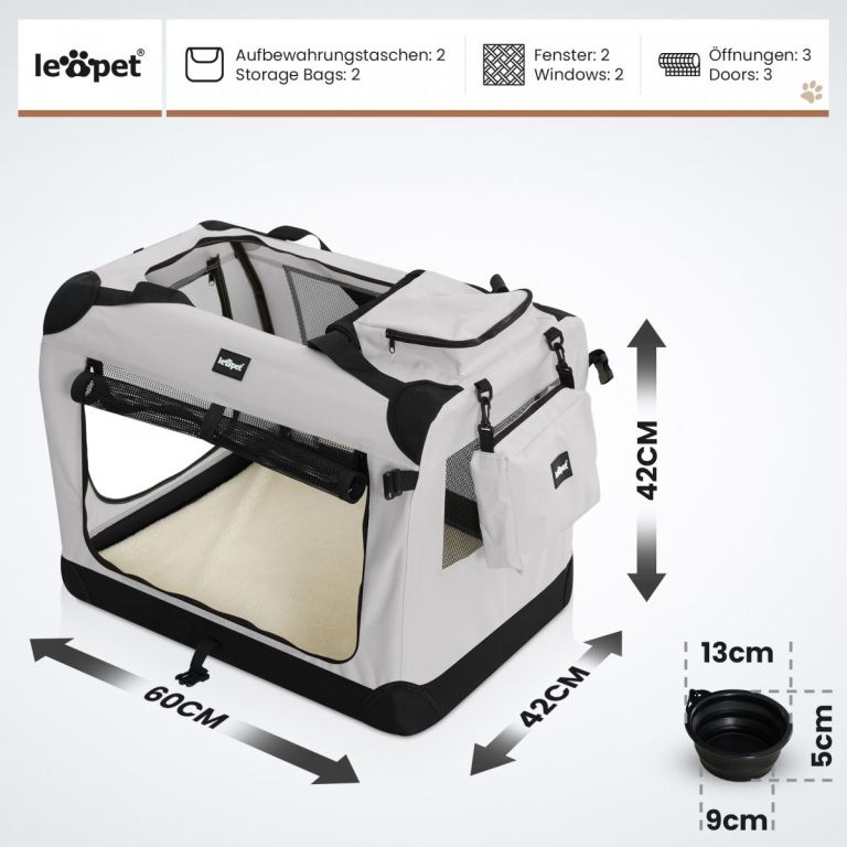 Úvod » DŮM | BYT » Domácí MAZLÍČCI » ♥ PŘEPRAVKY pro psy » Leopet Přepravní box pro psy M, 60 x 42 x 42 cm, šedý