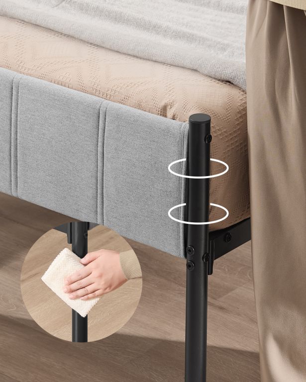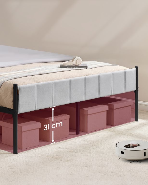 Robustní ocelový rám a devět pevných nohou zajišťují stabilitu a tichý provoz. Díky výšce 31 cm pod lůžkem získáte praktický úložný prostor, montáž je snadná a rychlá díky přehlednému návodu.