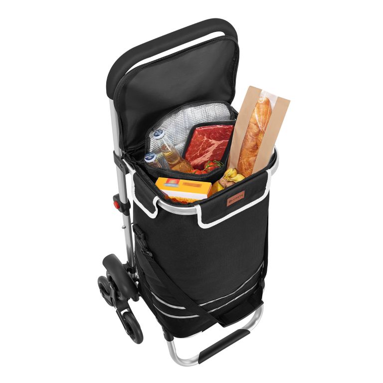 Nákupní vozík 3 v 1 na schody - objem 56 l, černý