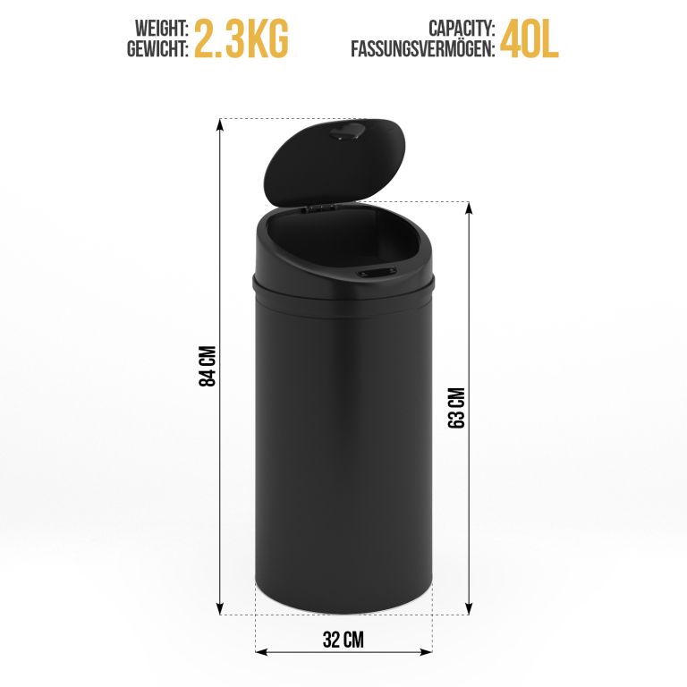 Odpadkový koš se senzorem 40 l černý, automatické otevírání