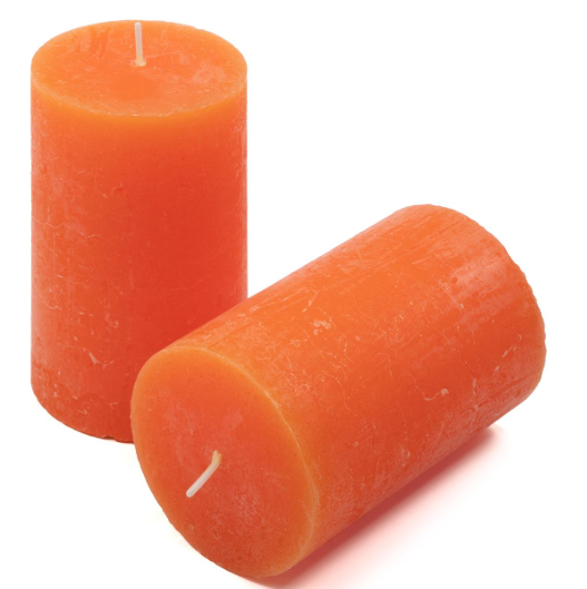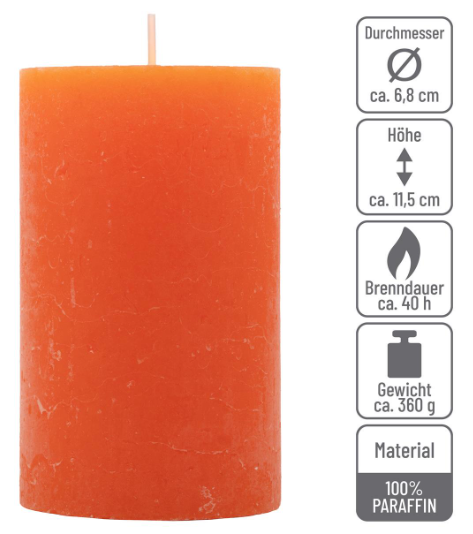 Úvod » DŮM | BYT » Bytové DEKORACE » ♥ SVÍČKY » Oranžová parafínová svíčka rustikální 11,5 cm, 40 h,12 ks