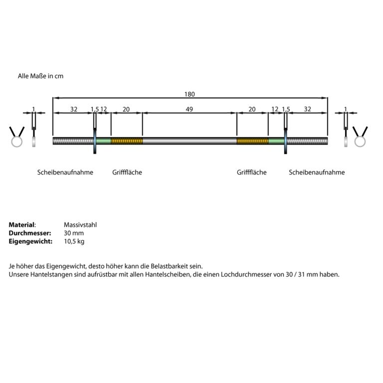 Posilovací tyč 180 cm, 30 mm, včetně pojistných uzávěrů