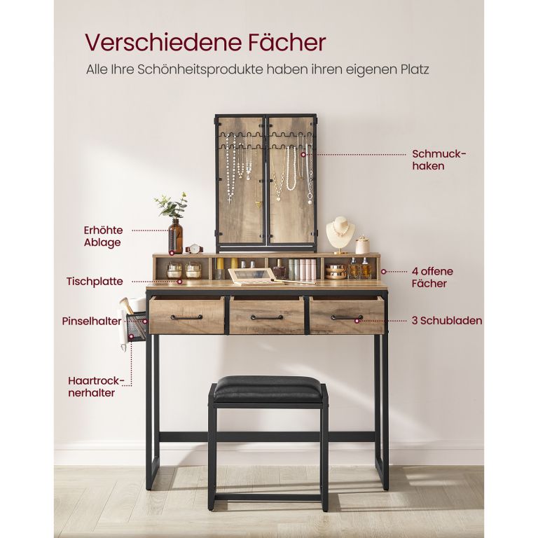 Úvod » DŮM | BYT » ♥ NÁBYTEK » Toaletní STOLKY » Toaletní stolek se třemi zrcadly a úložnými přihrádkami
