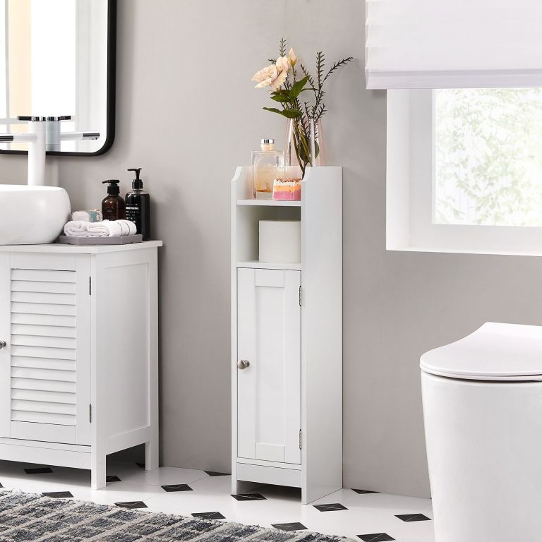 Úvod » DŮM | BYT » ♥ NÁBYTEK » Koupelnový NÁBYTEK » VASAGLE koupelnová skříňka bílá 80 cm, nastavitelná police