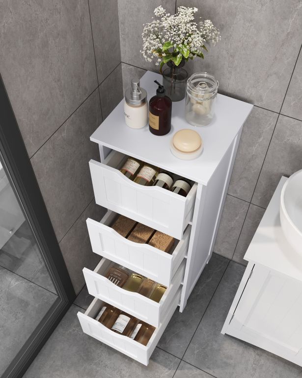 Úvod » DŮM | BYT » ♥ NÁBYTEK » Koupelnový NÁBYTEK » VASAGLE koupelnová skříňka se 4 zásuvkami, bílá 30×30×82 cm