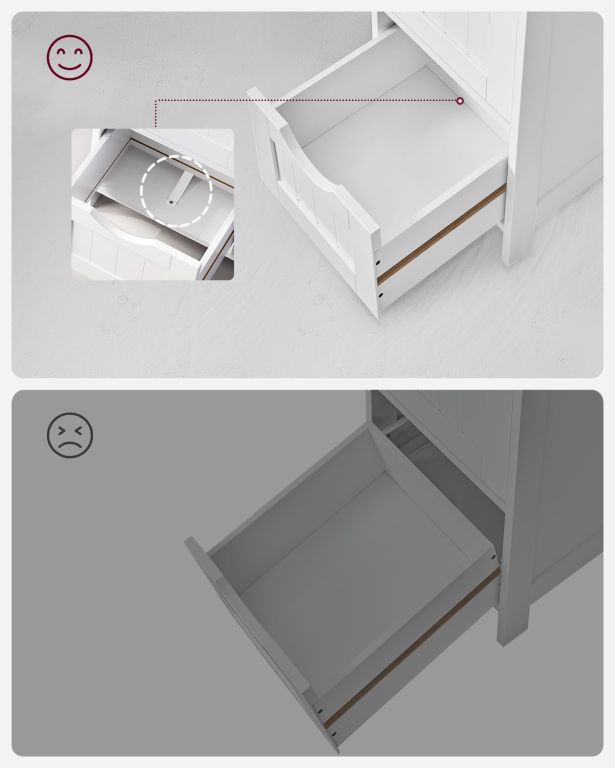 Tento kousek není jen funkčním úložným řešením, ale i estetickým doplňkem. Hodí se nejen do koupelny, ale i do předsíně, kuchyně nebo obývacího pokoje. MDF desky zajišťují pevnost, zatímco protiskluzový a proti převrácení systém přináší bezpečnost. Pokud hledáte styl, odolnost a úsporu prostoru v jednom, VASAGLE vás nezklame.