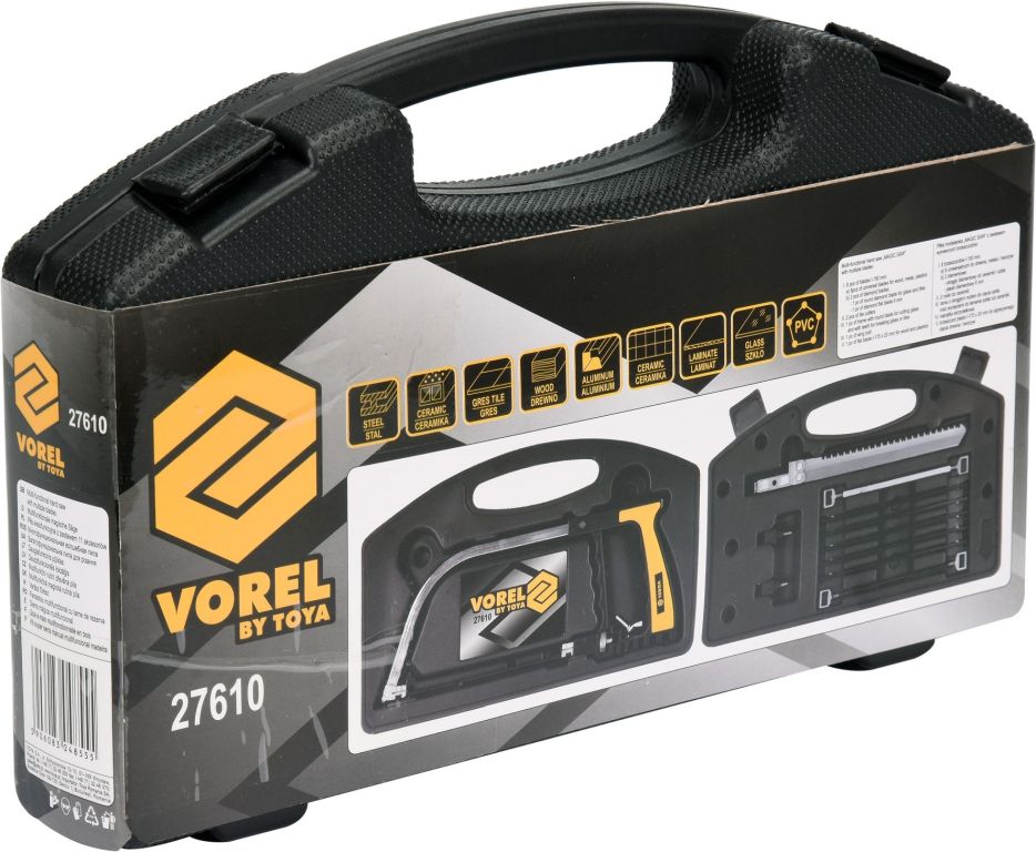Součástí sady je l-175 x 20 pilový plátek pro agresivní řezání dřeva a většiny plastů, dalších 8 kusů pilových listů, z toho 6 univerzálních pro dřevo, kov a plast a 2 diamantové s kulatám profilem na keramiku a sklo.