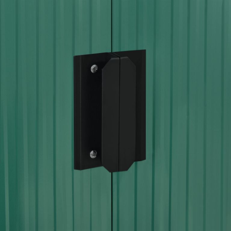 Užijte si pořádek a klid na své zahradě díky tomuto prostornému domku na nářadí. Moderní tmavě zelený design se hodí do každého prostředí a poskytne bezpečné místo pro vaše vybavení i v zimě.